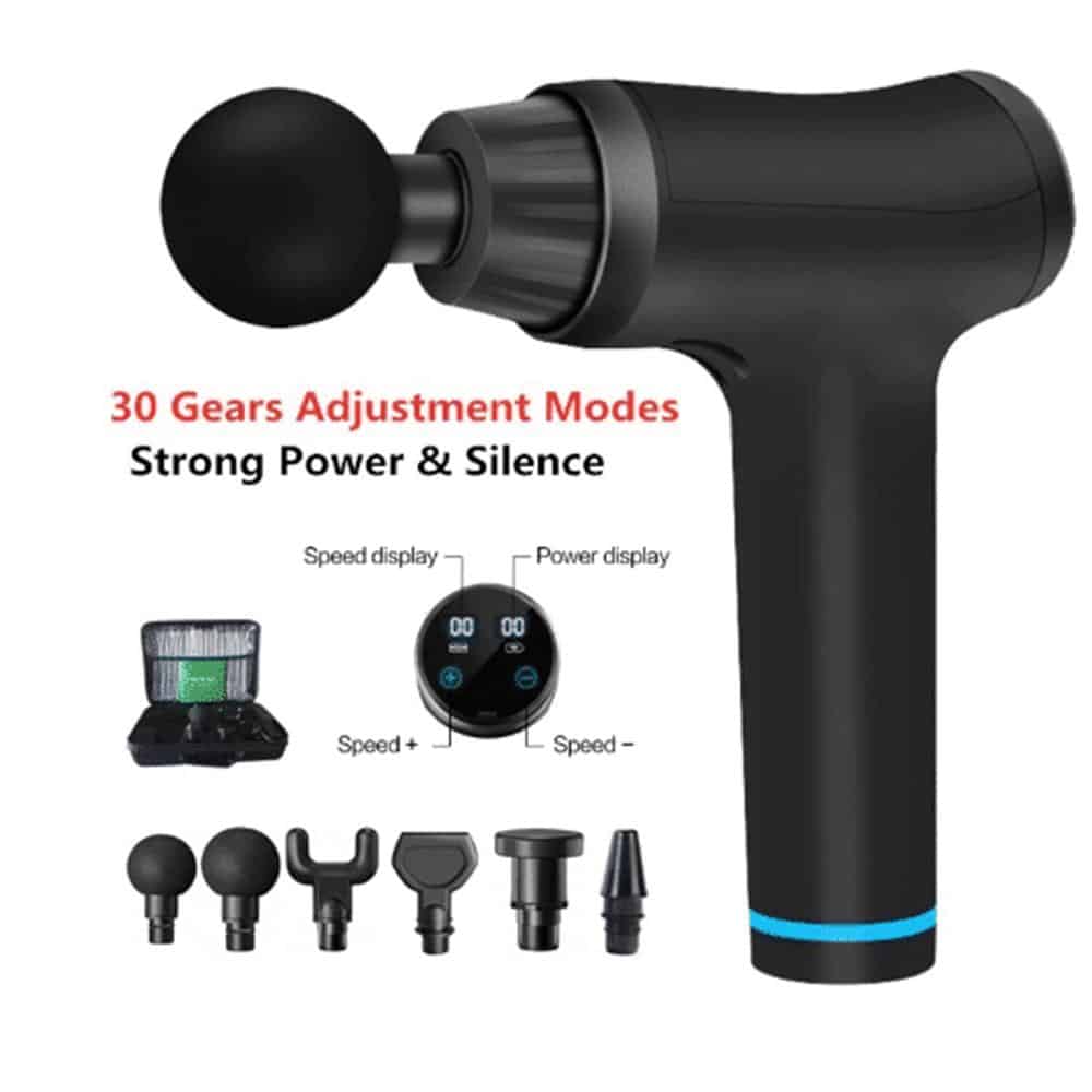 Massagepistolen har hele 30 forskellige hastighedsniveauer, 3.500 vibrationer/min, overbelastnings sikring og ikke mindst et ergonomisk og lækkert greb.