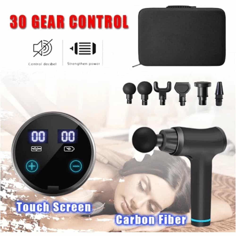 Vores ledningsfri Pro massagepistol er udstyret med en lydsvag og særdeles stærk motor, LCD-display i grebet der med et let tryk informere dig om batteri- og hastigheds niveau. Massageapparatet leveres med 6 smarte udskiftelige massagehoveder der hver og især bidrager til den bedste massageoplevelse: kugler, u-formet, spids, flad og luftpude, der passer til dine forskellige behov og giver en skøn wellnessoplevelse og mindske muskelsmerter i nakke, arme, ryg og ben.