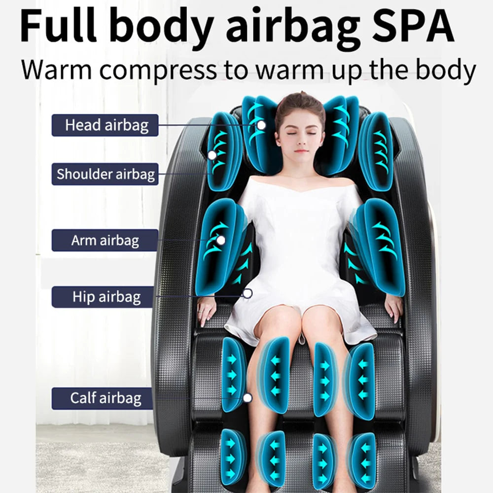 Massagestol A5 er udstyret med airbags, der målretter skuldre, arme, hofter, ben og fødder for komprimerende komfort og bedre cirkulation.